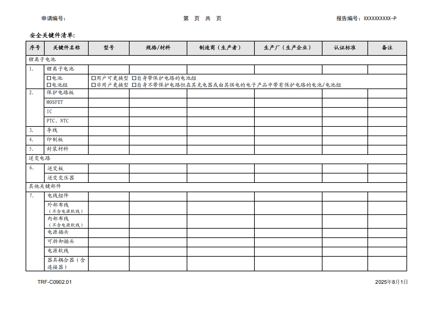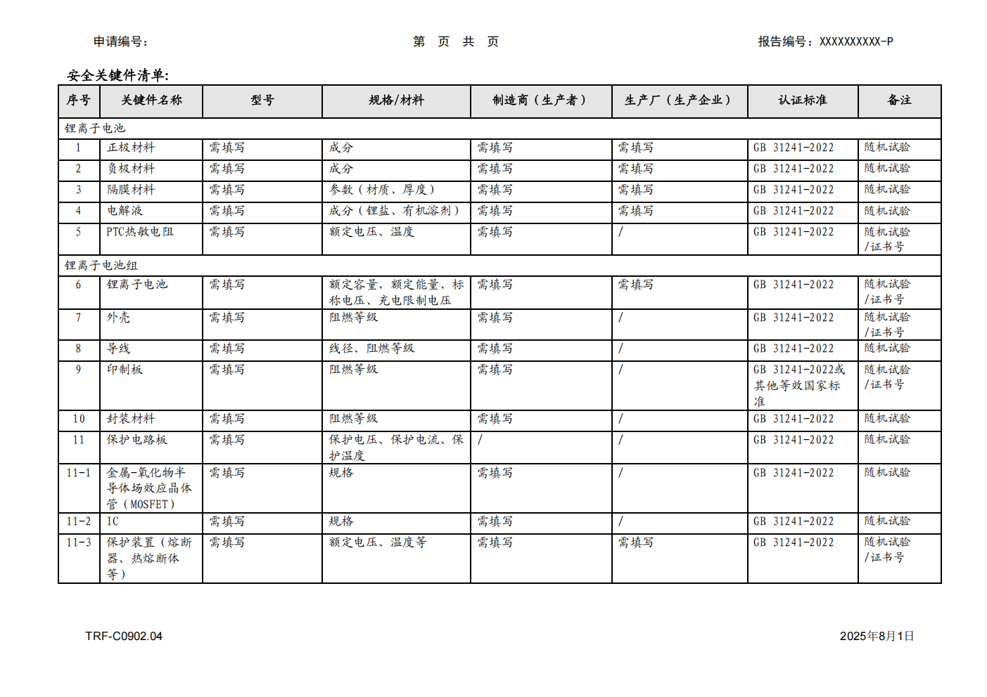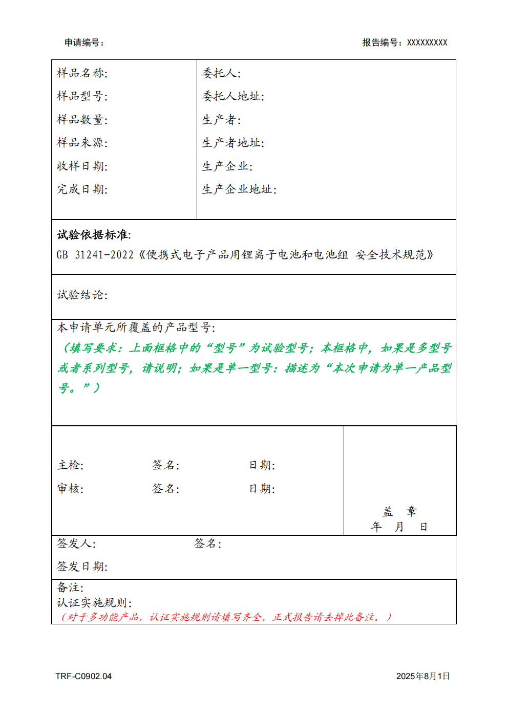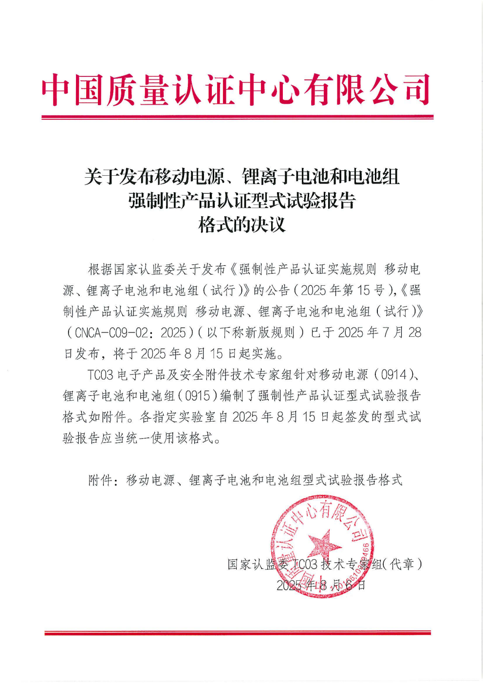 关于发布移动电源、锂离子电池和电池组强制性产品认证型式试验报告格式的决议